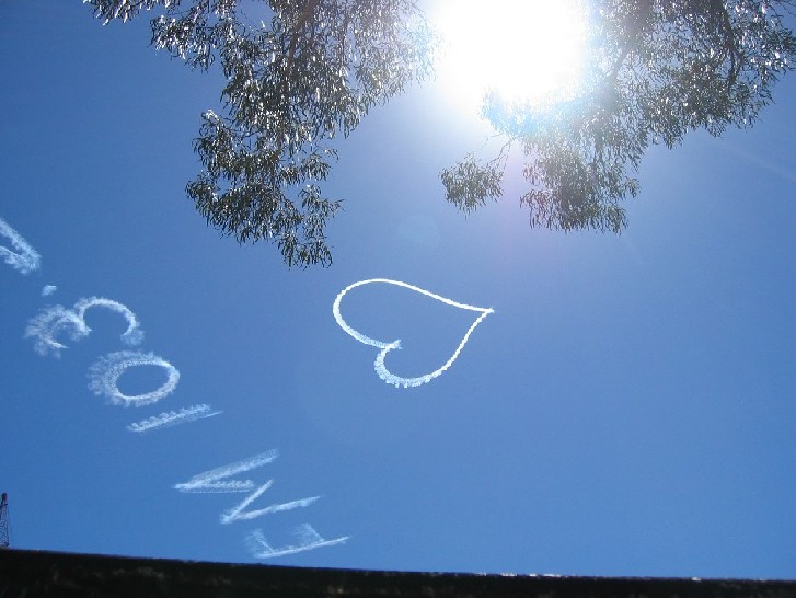 あとね、この写真は飛行機が空に描くのです。この方法で、男性が女性に『will you marry me?』そ、結婚してくれる?って描いて、プロポーズすることもあったらしいです。ロマンチックですな。結果は知らないけどね。この日はハートがかわいかったので撮りました。後は、雨が少なくて少なくて、緊急事態のときはを!『神様雨を!』みたいな文章が。